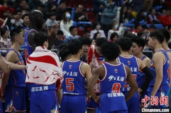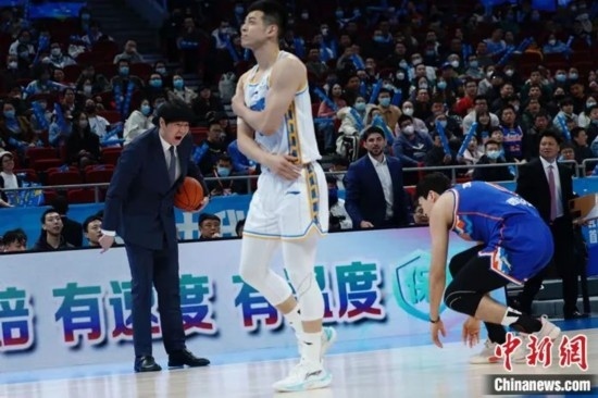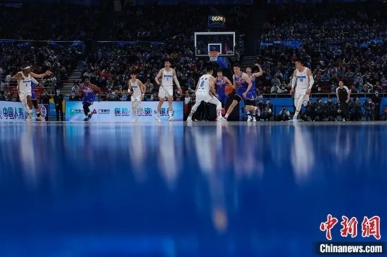 3月17日晚,新疆男籃對陣北京首鋼。中新社記者 韓海丹 攝