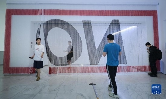 5月9日,參觀者在展覽現(xiàn)場(chǎng)觀賞參展作品《ON》。