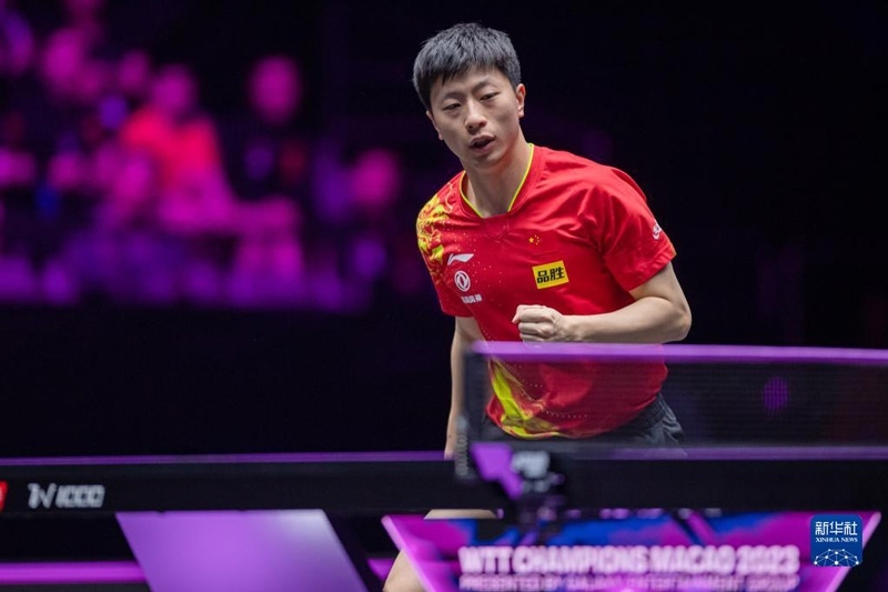 2023年4月22日,馬龍在比賽中。當日,在澳門塔石體育館舉行的2023世界乒乓球職業(yè)大聯(lián)盟(WTT)澳門冠軍賽男子單打半決賽中,中國選手馬龍以4比1戰(zhàn)勝法國選手艾利克斯·勒布倫,晉級決賽。新華社記者 張金加攝