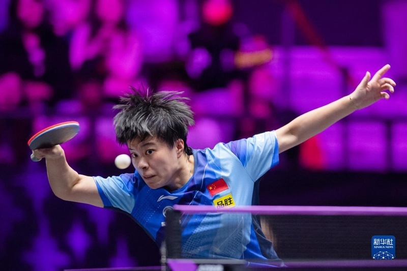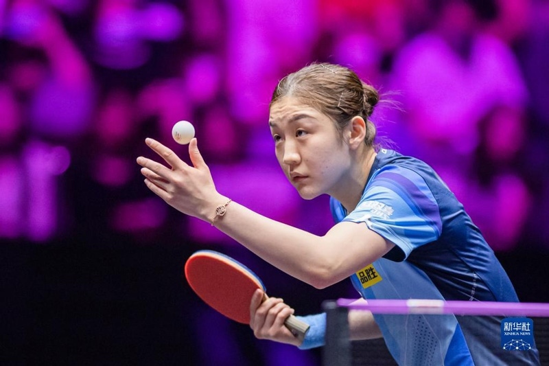 2023年4月11日,陳幸同在比賽中回球。當日,在河南新鄉(xiāng)舉行的世界乒乓球職業(yè)大聯(lián)盟(WTT)新鄉(xiāng)冠軍賽女單首輪比賽中,中國選手陳幸同以3比0戰(zhàn)勝日本選手木原美悠,晉級十六強。新華社記者 郝源攝