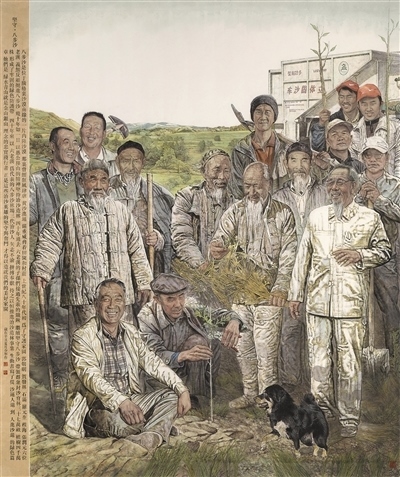 “三北”工程背后,是動人的英雄故事。寧夏“治沙英雄”王有德、甘肅八步沙林場“六老漢”……無數平凡的造林人,以尺寸之功積千秋之利,成為防沙治沙的模范人物,也成為美術工作者著力塑造的英雄形象。