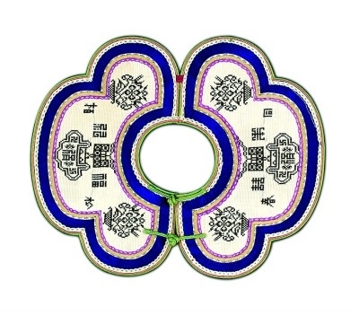依據(jù)工藝、地域、民族的不同,織繡印染單元分為織繡、印染和少數(shù)民族工藝三類,品種豐富,工藝精美,兼顧手作與機(jī)制。在織繡中,南京云錦織造復(fù)雜,圖案華美;五彩繽紛的成都蜀錦以染色熟絲織造,質(zhì)地堅(jiān)韌;蘇州漳緞以漳絨織造,富麗華貴;蘇州緙絲則采用通經(jīng)斷緯工藝與博古圖案,極盡工巧。刺繡展品以繡有吉祥圖案的日用品為主,如山西“打子繡錢袋”繡獅子滾繡球圖案,寓意好事不到頭;蘇州“金地拉鎖繡扇套”繡孔雀開屏與鳳求凰圖案,祈愿美好愛情。藍(lán)印花布產(chǎn)地多,應(yīng)用廣,多采用吉祥圖案,既有祈愿幼兒健康成長的“虎戲五毒紋肚兜”“麒麟送子圖圍嘴”,亦有寓意平安富貴的“牡丹花瓶紋門簾”,還有“勞動(dòng)生產(chǎn)”雙喜藍(lán)印花布褥面,倡導(dǎo)“女紡織家存千尺布,男耕田倉有萬石糧”。在少數(shù)民族工藝品中,“苗族刺繡花邊百褶裙”以黑色土布飾五彩裙擺,展現(xiàn)著苗族婦女“善歌舞,巧織繡”的傳統(tǒng)。