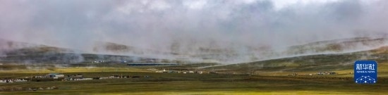 6月16日在國道317線那曲段拍攝的草原晨霧風(fēng)光(拼接照片)。