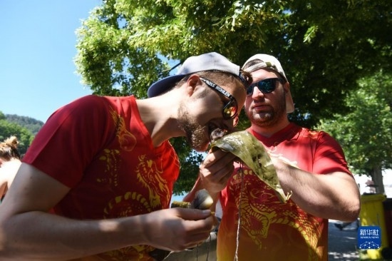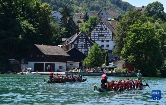 6月25日,在瑞士埃格利紹,人們參加賽龍舟活動。