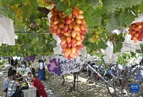近日,山東省平度市大澤山鎮(zhèn)3.5萬多畝葡萄陸續(xù)成熟,當?shù)嘏e辦的葡萄節(jié)吸引了眾多市民和游客前來采摘和游玩。據(jù)了解,大澤山鎮(zhèn)作為北方重要的葡萄集中種植地之一,擁有葡萄品種300余個,年產(chǎn)葡萄5萬余噸、年產(chǎn)值約7億元。