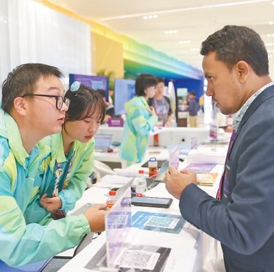 杭州亞運會主媒體中心志愿者為記者提供咨詢服務(wù)。本報記者 張武軍攝