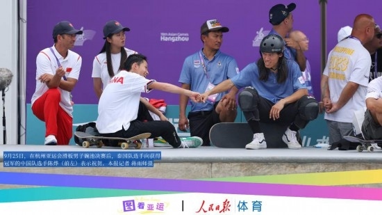 亞運賽場不僅有激烈的競爭,更有真誠的交流。杭州亞運會賽場內(nèi)外,友誼之花處處綻放。覃海洋、閆子貝握手慶祝包攬男子100米蛙泳冠亞軍,新加坡隊選手康占斌向柯潔贈送紀念徽章以示友好,泰國選手和陳燁碰拳表示祝賀……亞運會既是運動員們切磋技術、較量能力的舞臺,也搭建起了溝通的橋梁,充分印證了杭州亞運會“心心相融,愛達未來”的口號。