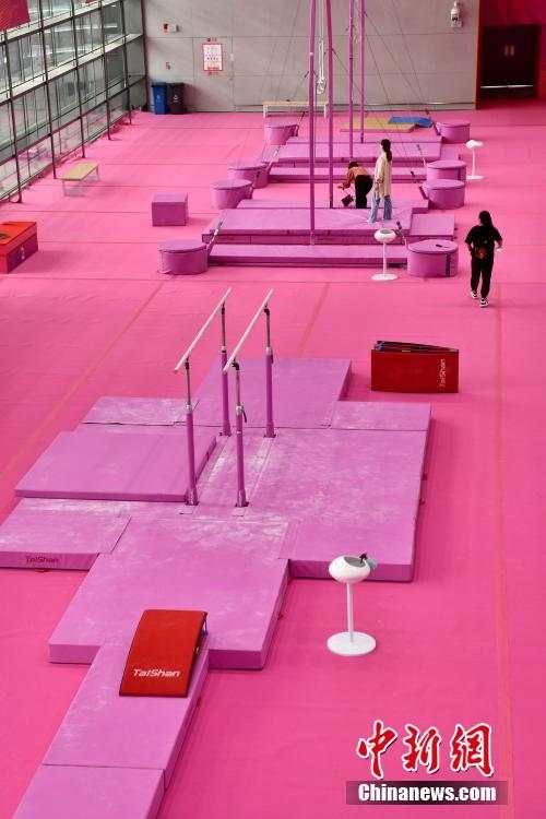 打卡成都大運會里的“粉色系”體操比賽訓(xùn)練場
