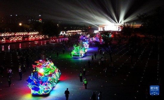 唐大明宮是盛唐時(shí)期享有盛名的宮殿群,有著“千宮之宮”的美譽(yù)。國(guó)慶期間,古風(fēng)演藝、華服大秀、曲藝匯演、彩車(chē)巡游等一系列活動(dòng)在大明宮國(guó)家遺址公園持續(xù)上演。夜幕之下,盛唐文化與現(xiàn)代時(shí)尚在此相映生輝,吸引市民游客前來(lái)參觀打卡。新華社記者 劉瀟 攝