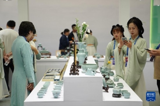 10月18日,人們?cè)诖刹?huì)汝窯展臺(tái)參觀。