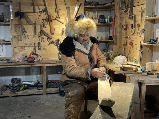 作坊墻面上,掛滿各式各樣的工具,這些都是斯蘭別克·沙和什從父親手中繼承來的。胡安什別克·斯蘭別克15歲時跟著父親學習這門技藝,剛開始連尺寸都掌握不好,還會不小心把樺木板掰斷。但憑借熱愛和堅持,他現在制作的毛皮滑雪板和父親做得一樣好。
