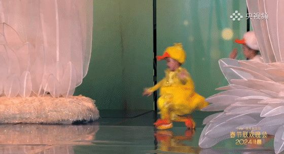 每年春晚都少不了兒童節(jié)目,導(dǎo)演組堅(jiān)持兒童舞蹈要從孩子的眼睛看世界,必須符合孩子身體的表達(dá)。這些“小天鵝們”正是來(lái)自駱賓王的家鄉(xiāng)義烏,他們用自己的理解展現(xiàn)了《詠鵝》中“白鵝戲水圖”的獨(dú)特韻味。“跪游”的經(jīng)典動(dòng)作把“紅掌撥清波”刻畫(huà)得惟妙惟肖,“翹屁股”更是萌翻了觀眾,左搖右擺的“矮子步”還是來(lái)自孩子們的鬼馬“創(chuàng)作”,整個(gè)舞蹈充滿(mǎn)了童趣純真。