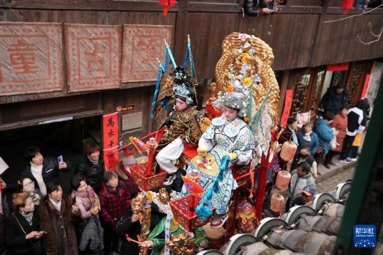 當日,有500多年歷史的前童元宵行會在浙江省寧海縣前童古鎮(zhèn)舉行。每年正月十四、十五舉行的前童元宵行會始于明中葉,群眾以鳴群鑼、抬鼓亭、放銃花等方式紀念祖先開渠鑿砩、灌溉農(nóng)田的功德,祈愿年景豐收。2014年,前童元宵行會入選第四批國家級非物質(zhì)文化遺產(chǎn)名錄。近年來前童古鎮(zhèn)發(fā)展旅游經(jīng)濟,元宵行會成為展示鄉(xiāng)村振興的重要窗口。