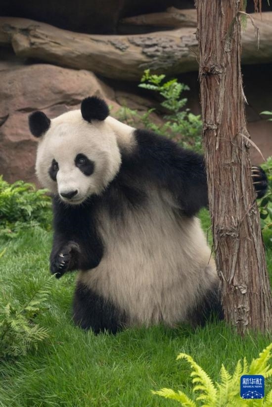 這是美國(guó)加利福尼亞州圣迭戈動(dòng)物園7月19日發(fā)布的大熊貓“云川”在動(dòng)物園新家的照片。