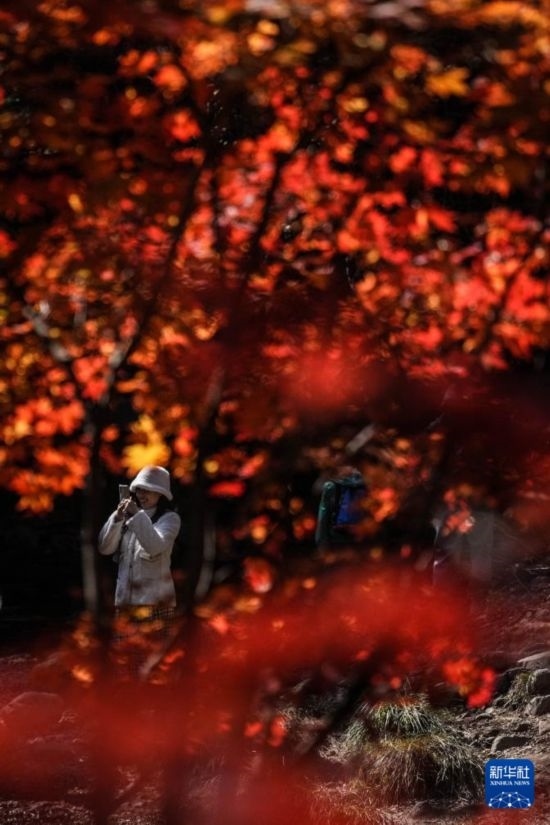 10月7日,遼寧本溪老邊溝風景區(qū)內的楓樹正值最佳觀賞期,很多游客來到這里觀賞金秋“楓”景。
