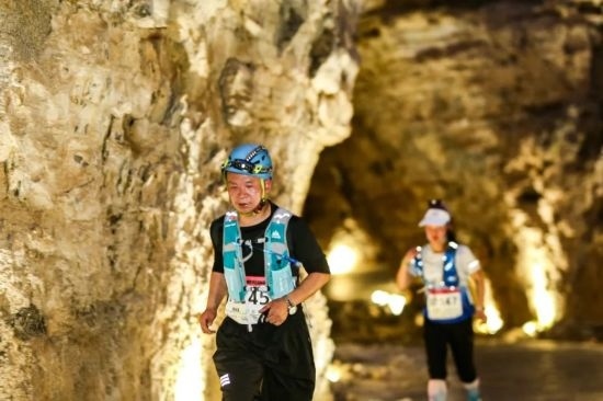 參賽選手在2024探秘貴州·翡翠綏陽亞洲第一長(zhǎng)洞雙河洞山地穿越挑戰(zhàn)賽比賽途中。(綏陽縣教體局供圖)