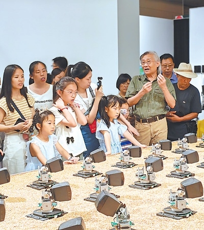 “第十四屆全國美術(shù)作品展覽實驗藝術(shù)、數(shù)字藝術(shù)與動畫作品展”專家導(dǎo)賞現(xiàn)場。中國美術(shù)家協(xié)會供圖