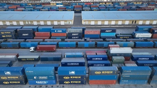 石家莊國(guó)際陸港的中歐班列裝車(chē)待發(fā)。