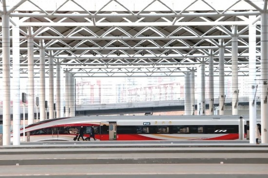 除夕當(dāng)天,一列復(fù)興號(hào)智能動(dòng)車(chē)組蓄勢(shì)待發(fā)。