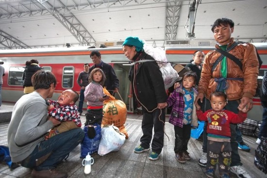 2015年,一對(duì)老兩口乘坐高鐵到北京與兒子過(guò)團(tuán)圓年,實(shí)現(xiàn)反向春運(yùn)。