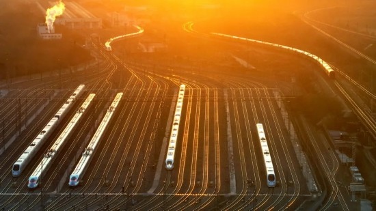 除夕當(dāng)天,石家莊動(dòng)車(chē)運(yùn)用所被金色的晨曦照亮。