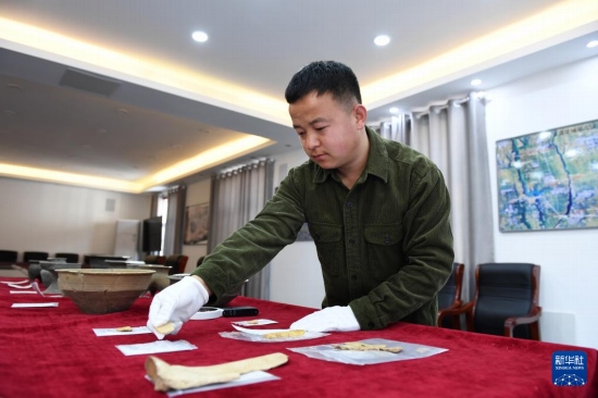 2025年2月25日,在位于陜西省寶雞市的周原田野考古中心,陜西省考古研究院研究實(shí)習(xí)員閆永強(qiáng)在整理周原遺址出土文物。新華社記者 李一博 攝
