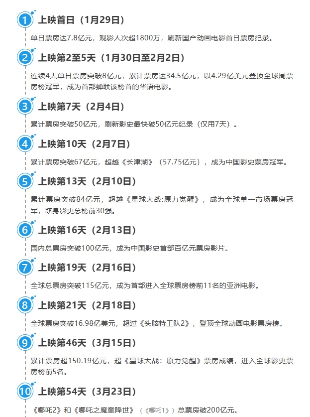 2月13日起,《哪吒2》在澳大利亞、新西蘭、美國、加拿大、南非、日本等海外市場(chǎng)正式上映,取得了喜人的票房與口碑,隨后還陸續(xù)與英、法、德等歐洲37國觀眾見面。截至3月23日,《哪吒2》在北美地區(qū)票房超2035萬美元,香港票房超652萬美元,均刷新排片和票房紀(jì)錄。