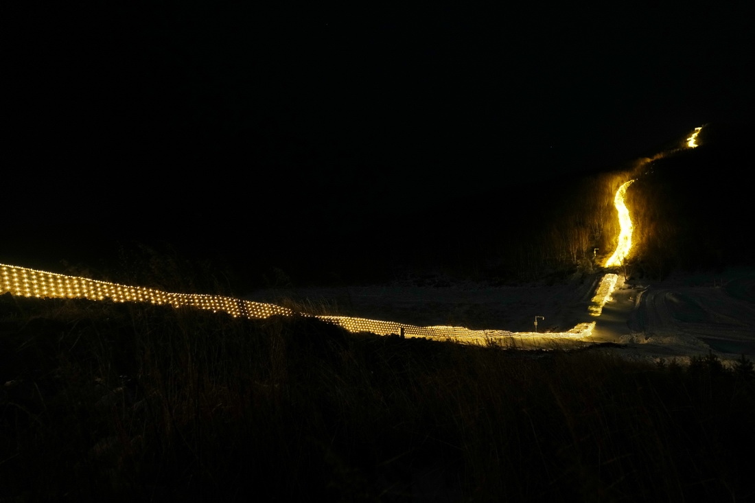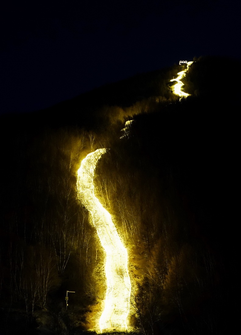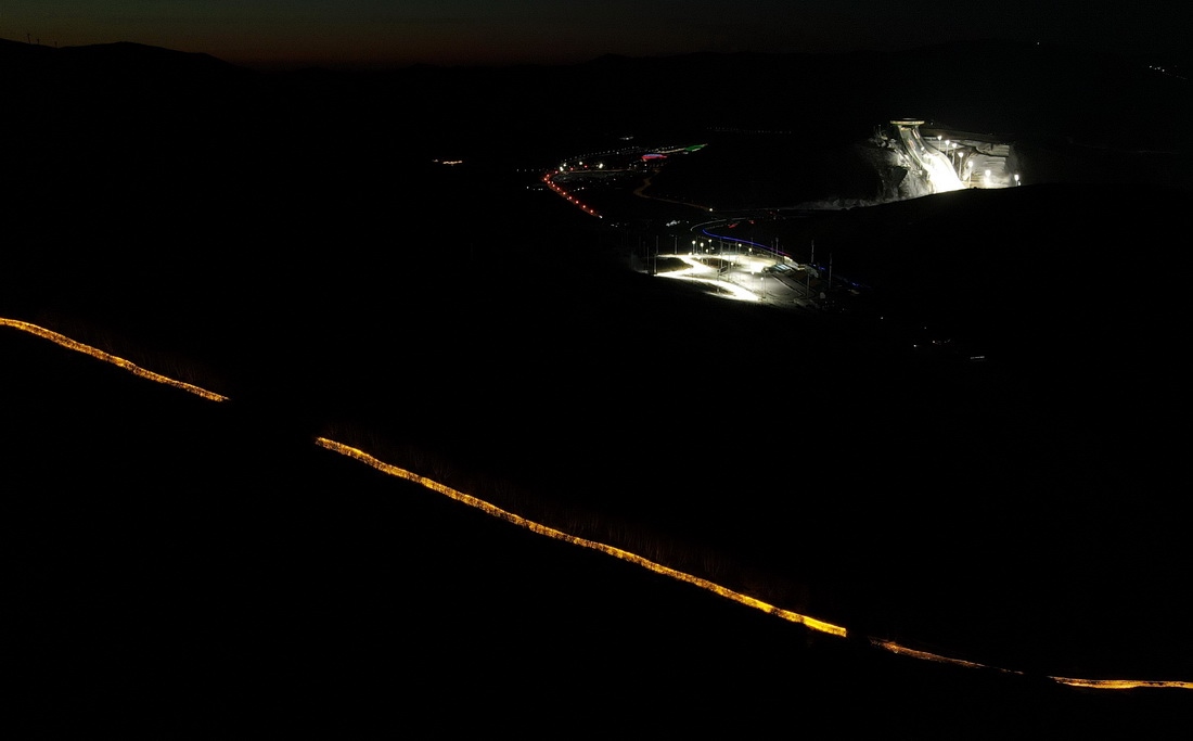 這是崇禮長城景觀展示亮化工程現(xiàn)場的燈帶(12月30日攝)。新華社記者 楊世堯 攝