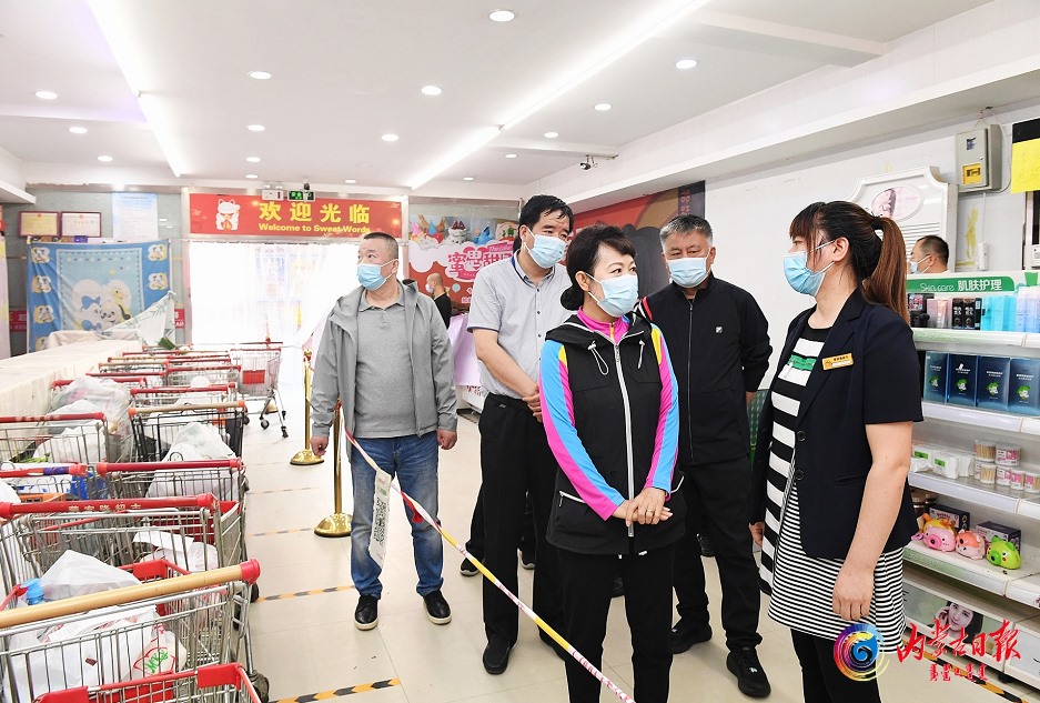 蒙客隆超市是疫情期間全市117個(gè)保供超市之一。王莉霞走進(jìn)超市,詳細(xì)了解商品供應(yīng)、物資配送等具體情況。她說(shuō),要保證貨源充足,劃小配送單元,跟進(jìn)社區(qū)管理配套,建立定點(diǎn)供應(yīng)機(jī)制,全方位服務(wù)保障群眾日常生活。