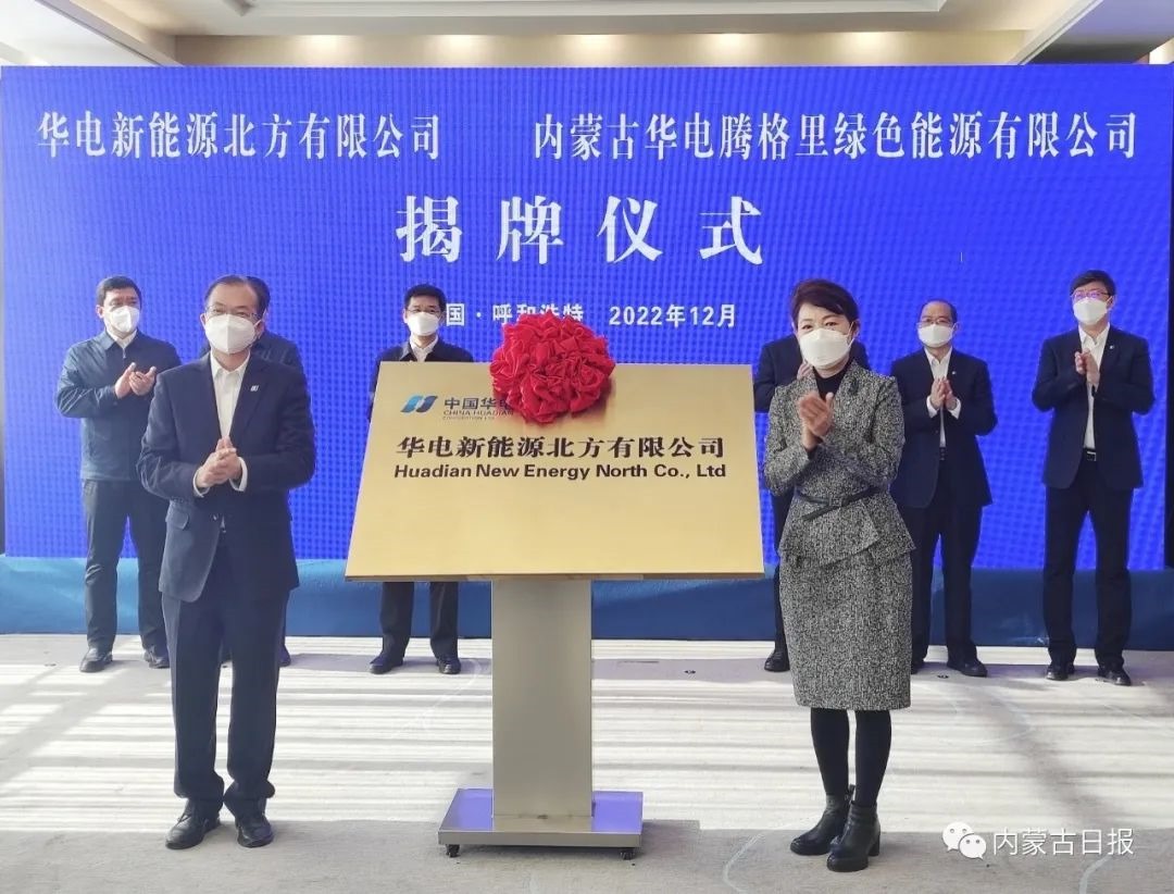 12月27日,自治區(qū)黨委副書記、自治區(qū)主席王莉霞,中國華電集團董事長江毅為新成立的華電新能源北方有限公司揭牌。記者安寅東攝