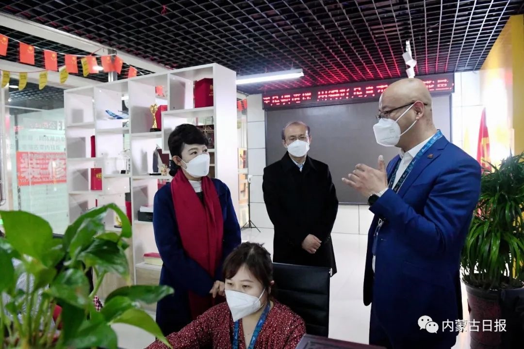 1月28日下午,王莉霞在內(nèi)蒙古騰蒙科技有限公司了解宣傳內(nèi)蒙古和自媒體運營有關(guān)情況。記者韓卿立攝