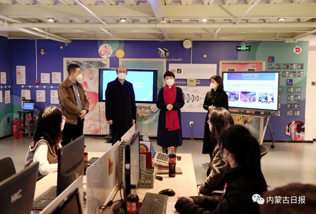 1月28日下午,王莉霞來到內(nèi)蒙古在線媒體文化發(fā)展有限公司,了解新浪內(nèi)蒙古運營中心情況和新媒體產(chǎn)品制作、發(fā)布等工作流程。記者韓卿立攝