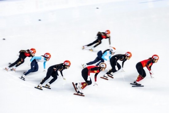 2月17日,第十四屆全國冬季運動會短道速滑(公開組)女子3000米接力半決賽中。新華社記者 黃偉 攝