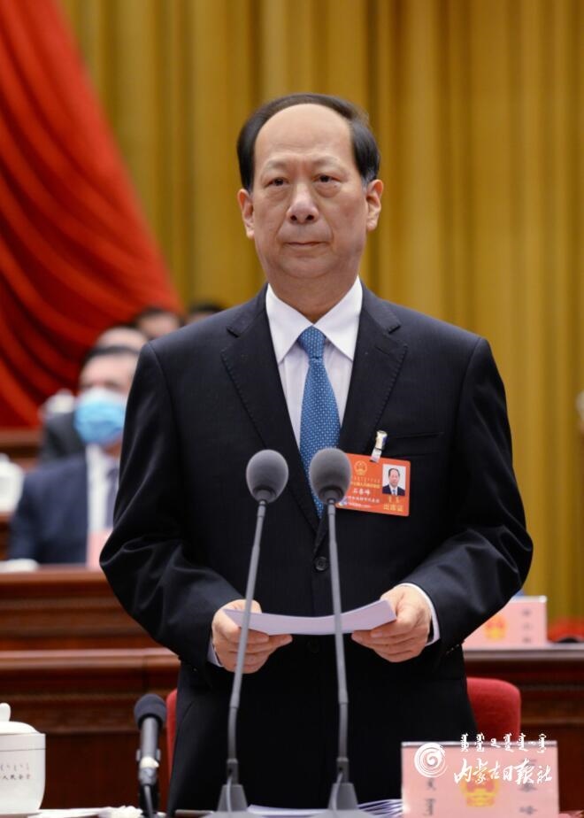 1月26日上午,自治區(qū)主席布小林代表自治區(qū)政府向大會作政府工作報告。內(nèi)蒙古日報記者 袁永紅 攝