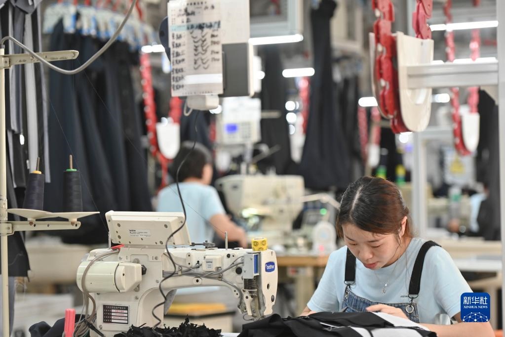 在位于福建省泉州市經(jīng)濟(jì)技術(shù)開發(fā)區(qū)的九牧王西褲智能化生產(chǎn)車間,工人在自動化西褲吊掛流水線上作業(yè)(2021年7月30日攝)。近年來,泉州市稅務(wù)部門積極落實(shí)減稅降費(fèi),出臺一系列穩(wěn)定工業(yè)、扶持外貿(mào)、鼓勵企業(yè)研發(fā)創(chuàng)新的政策,服務(wù)實(shí)體經(jīng)濟(jì)發(fā)展。新華社記者 宋為偉 攝