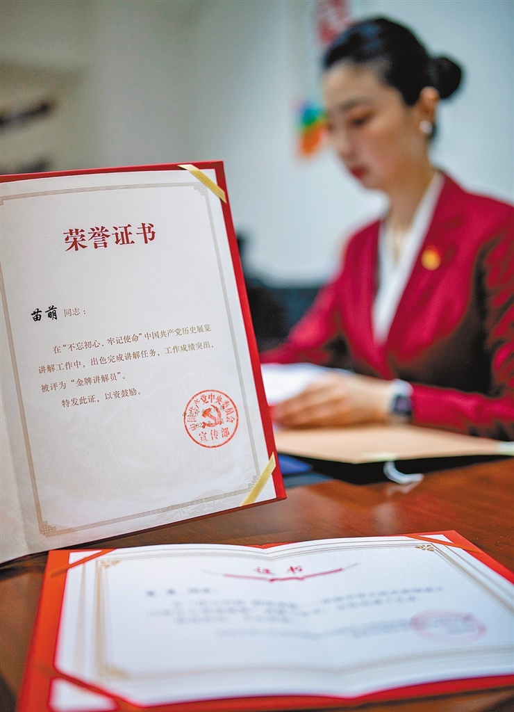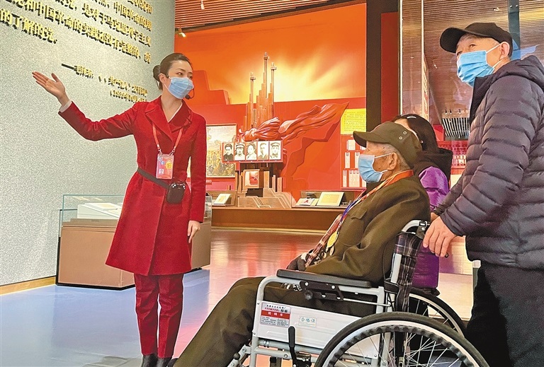 在中國共產黨歷史展覽館為觀眾講解?! ?/p>